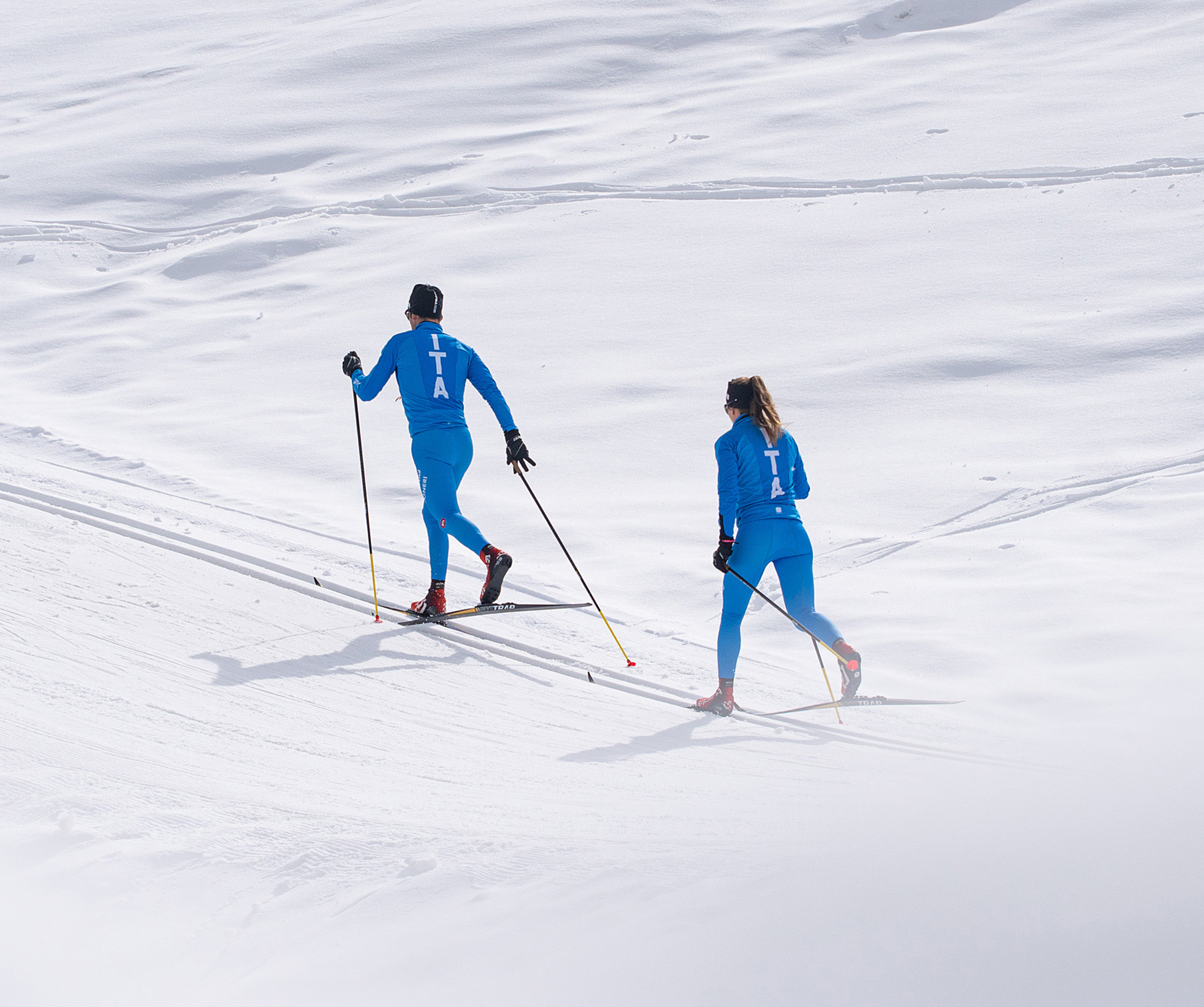 EASE OF GLIDE IS AS IMPORTANT TO SKI TRAB AS IT IS FOR THE CROSS-COUNTRY SKIER. AT OUR FACTORY IN BORMIO, A PRODUCTION PROCESS HAS BEEN DEVELOPED WHERE EVERY DETAIL IS FINISHED WITH THIS IN MIND. THE ASSEMBLY PHASE IS CARRIED OUT AT A LOW TEMPERATURE IN ORDER TO PRESERVE THE CHARACTERISTICS OF THE MATERIALS, SO THE DETAILED FINISHING TOUCHES ARE ADDED USING TECHNIQUES WHICH PERFECTLY PRESERVE THE ORIGINAL QUALITY OF THE BASE. IN ORDER TO SATISFY A VARIETY OF NEEDS, THERE ARE TWO DIFFERENT TYPES OF SKI AVAILABLE: COLD AND PLUS, WITH PROFILE, SIDE-CUT, BASE AND FINISH IDEAL FOR EITHER COLD OR WARMER SNOW CONDITIONS.